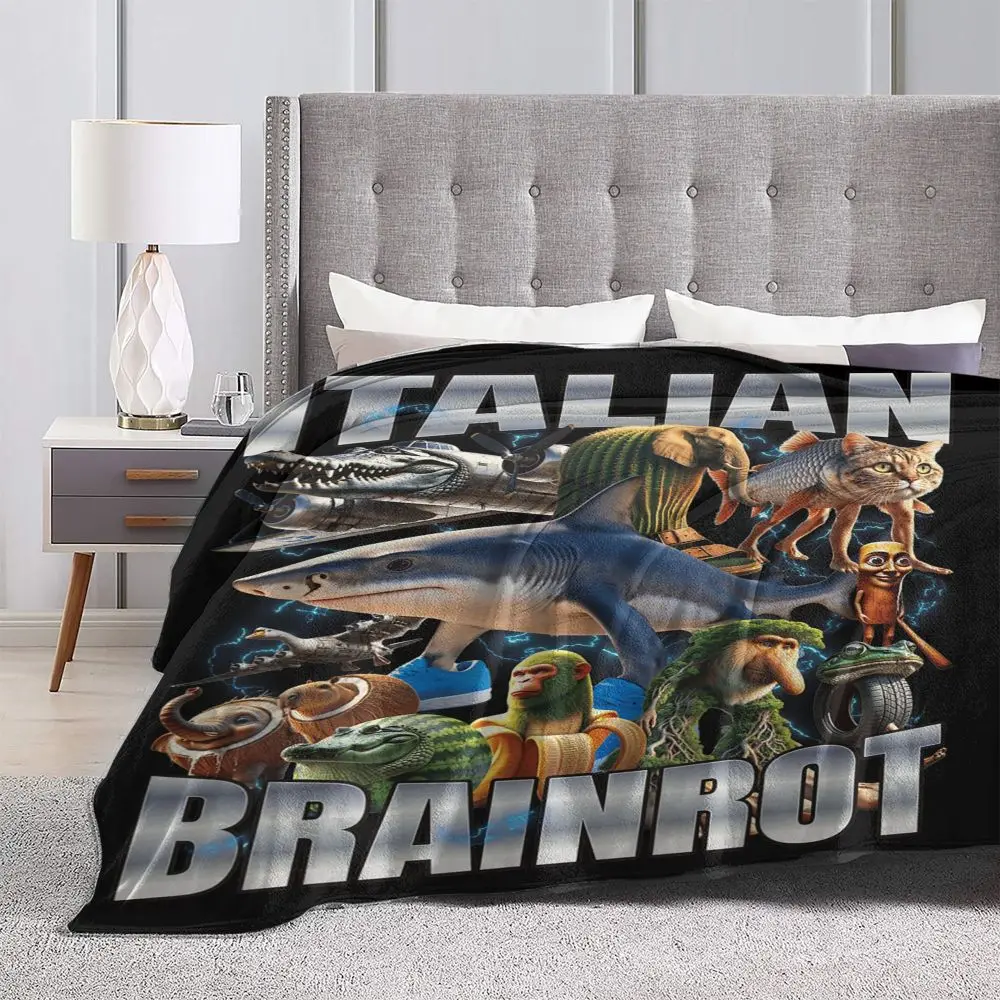 Soft Warm Blanket Travel Italian Brainrot Tralalero Tralala Tung Tung Tung Sahur Bombardiro Crocodilo Bedding Throws Flannel